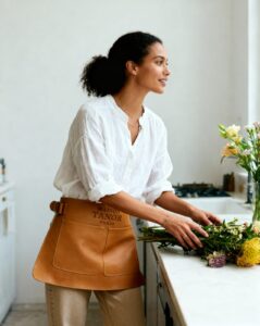 Pensé pour les couples qui aiment cuisiner, servir ou créer ensemble, ce duo en cuir pleine fleur allie style, confort et liberté de mouvement.